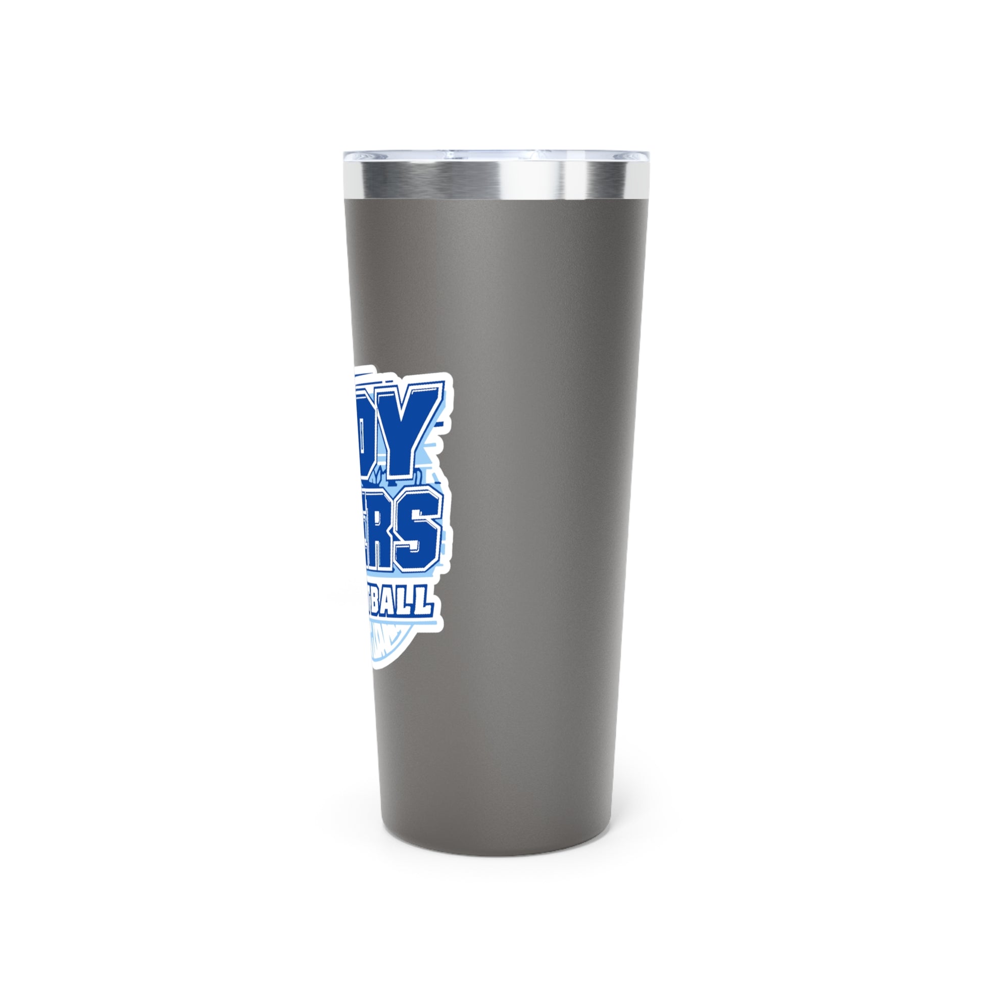This 22oz copper-insulated tumbler keeps pace with busy days and loud gyms. Built from double-wall stainless steel with copper vacuum insulation, it locks in heat for morning coffee and chills drinks through long afternoon practices. The spill-resistant see-through push-on lid gives quick access between drills and errands, while the durable powder coat stands up to backpacks, water bottles, and the tumble of a sports bag. The bold varsity-style graphic wraps the cup with team energy — a low-key way to rep your squad whether you’re courtside, commuting, or refilling on the go.
