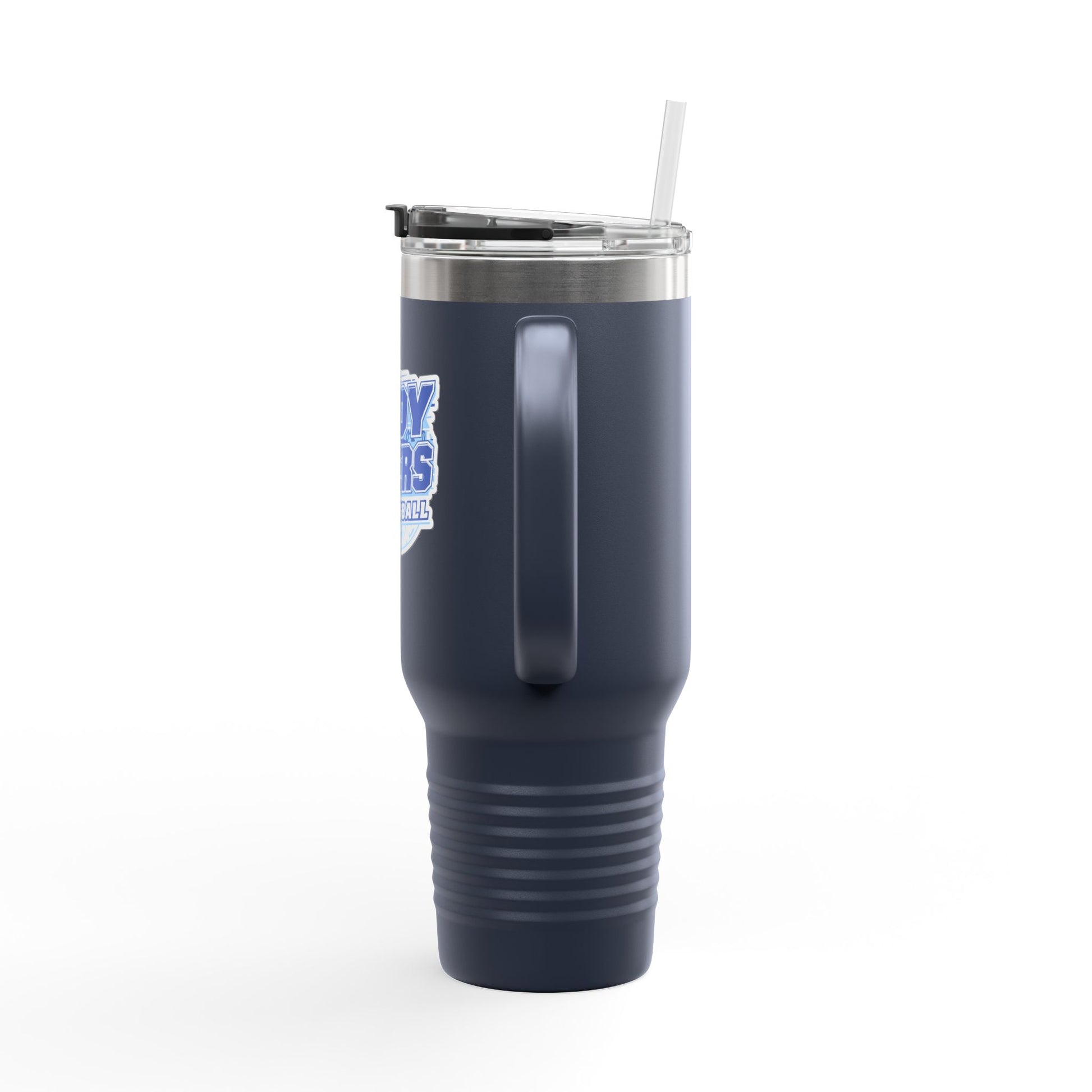This 40oz insulated travel mug holds an all-day cup of coffee or a long road-trip supply of iced tea. Built from rust-resistant stainless steel with double-wall insulation, it keeps drinks hot or cold for hours. The ergonomic handle and included straw make it easy to sip on the go, and the leak-resistant push-on lid with a secure latch keeps tumbler contents controlled while you’re moving. The smooth powder-coated finish accepts vibrant UV-DTF artwork, so your team logo or custom design stays crisp. Durable, BPA-free, and available in multiple colors, this tumbler suits long practices, busy commutes, and sideline mornings.