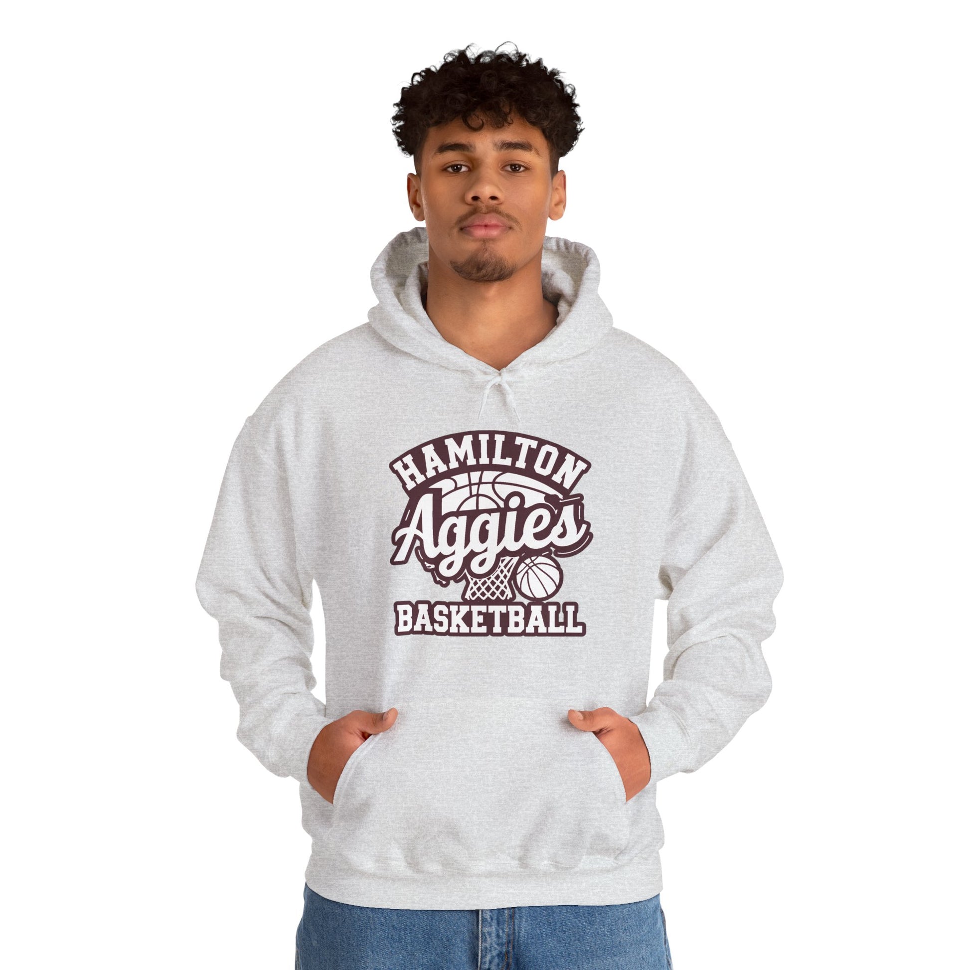 Adult Hoodie Sweatshirt \ Hamilton Aggies Basketball \ HABBG1