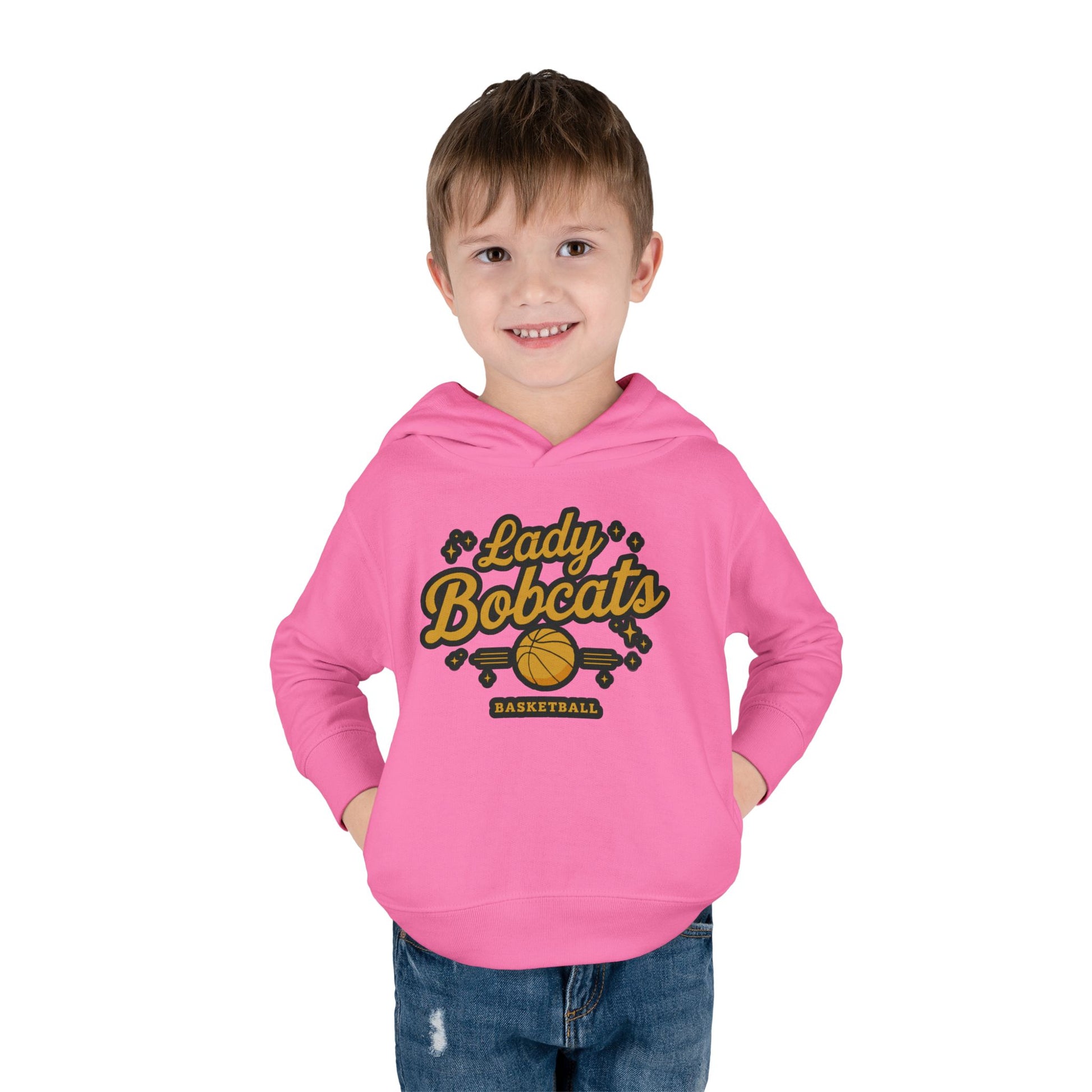 A cozy toddler hoodie made for little athletes and team supporters. The soft cotton-poly blend and jersey-lined hood wrap tiny heads in warmth during cool mornings at practice or brisk weekend games. A playful “Lady Bobcats” basketball design sits on the front—bold, friendly lettering and a cartoon basketball give it a spirited, team-ready look. Practical touches like side-seam pockets and ribbed cuffs keep hands warm and help the hoodie hold its shape through play. Lightweight but sturdy, this pullover becomes a go-to layer for playground runs, stands-on-the-sidelines cheering, and everyday comfort.