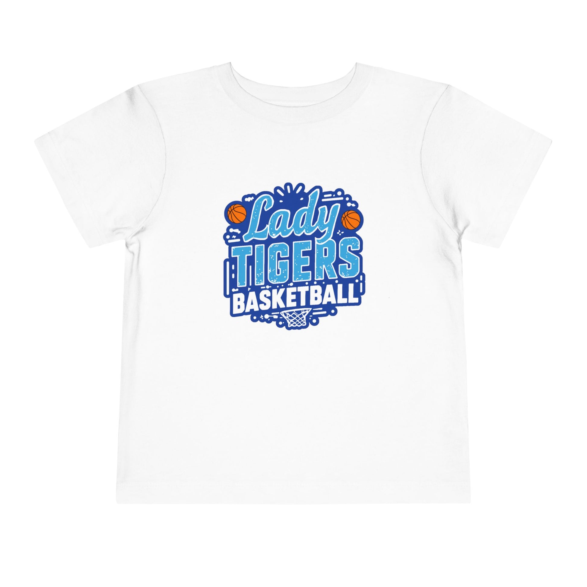A soft, lightweight toddler tee made for early team spirit and playful afternoons. The center-front graphic reads “Lady Tigers Basketball” in bold, energetic lettering with tiny basketball accents, giving it a sporty, hometown-team vibe. Short sleeves and a tear-away label keep little ones comfortable during recess, practices, or family outings. Breathable airlume-combed cotton and a true-to-shape design make this shirt easy to layer under jackets or wear on its own for warm days at the park or gym. It’s casual, cheerful, and built to move with busy toddlers who love to run, jump, and cheer on their favorite players.