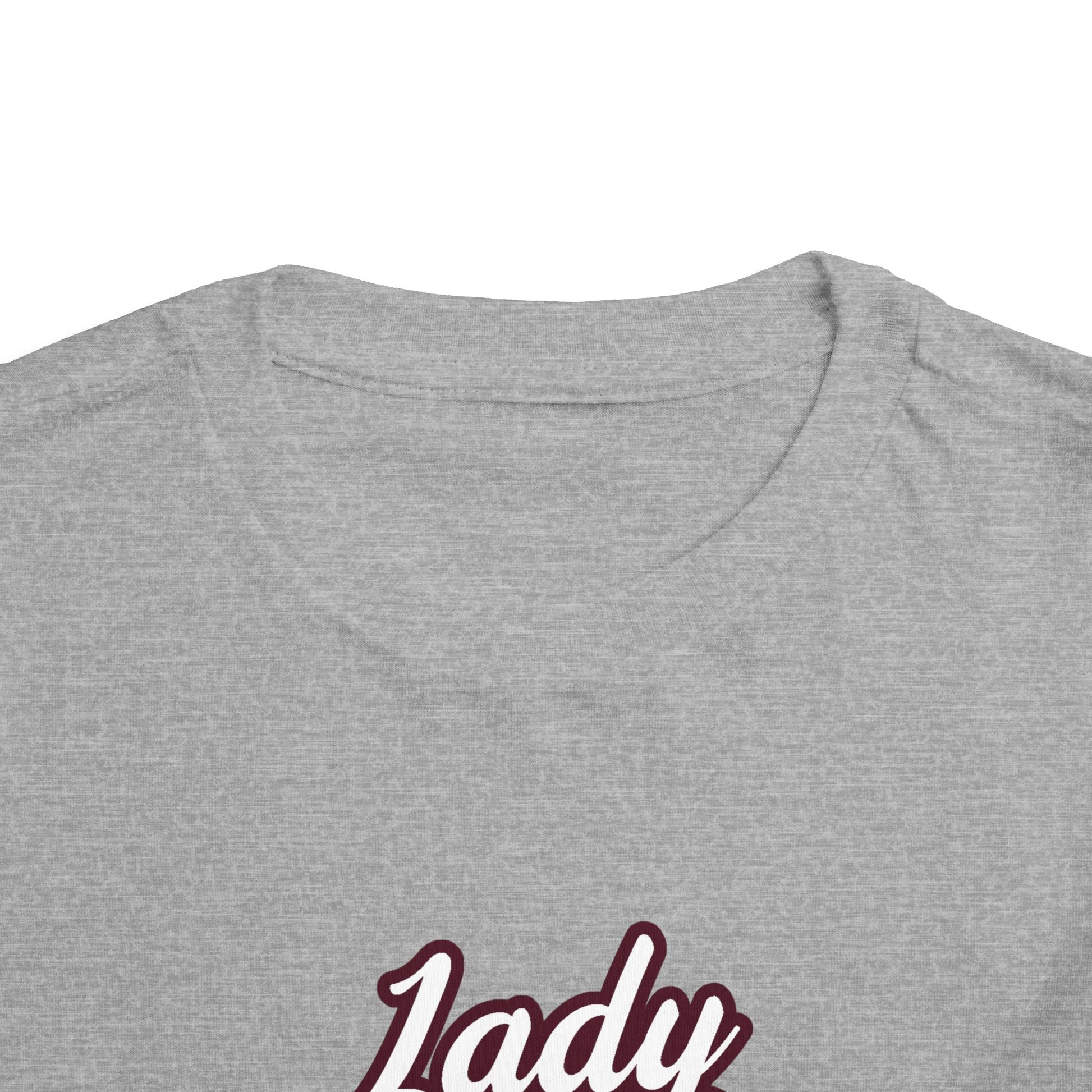 Soft, small, and spirited — this toddler tee brings big-team energy to little fans. The vintage script “Lady Aggies” and the sweet basketball icon sit centered on a lightweight white tee, made for zooming across driveways, cheering from the sidelines, and layering under jackets for chilly game days. The fabric feels gentle against sensitive skin, the side seams hold shape through tumbles, and the tear-away label keeps necks itch-free. It’s built to move with active toddlers while showing off school pride in a simple, classic way.