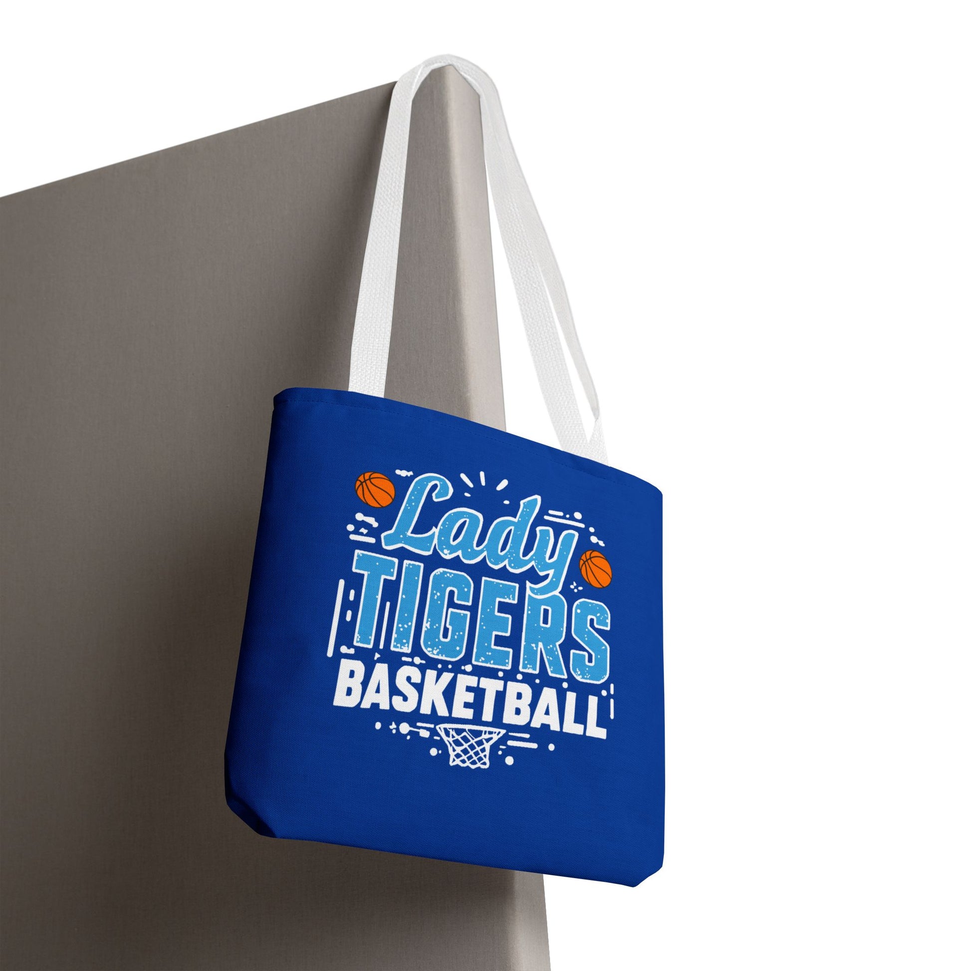 Carry team pride every day with this vibrant, game-ready tote. Soft but sturdy polyester holds practices, snacks, and spirit — while boxed corners add room for extra gear. The bold “Lady Tigers Basketball” design pops on a rich blue background, accented by playful basketball icons and energetic lettering. It feels like the gym buzzer, halftime huddle, and victory high-five all rolled into one accessory. Sling it over your shoulder to school, weekend tournaments, or errands and let your loyalty do the talking.