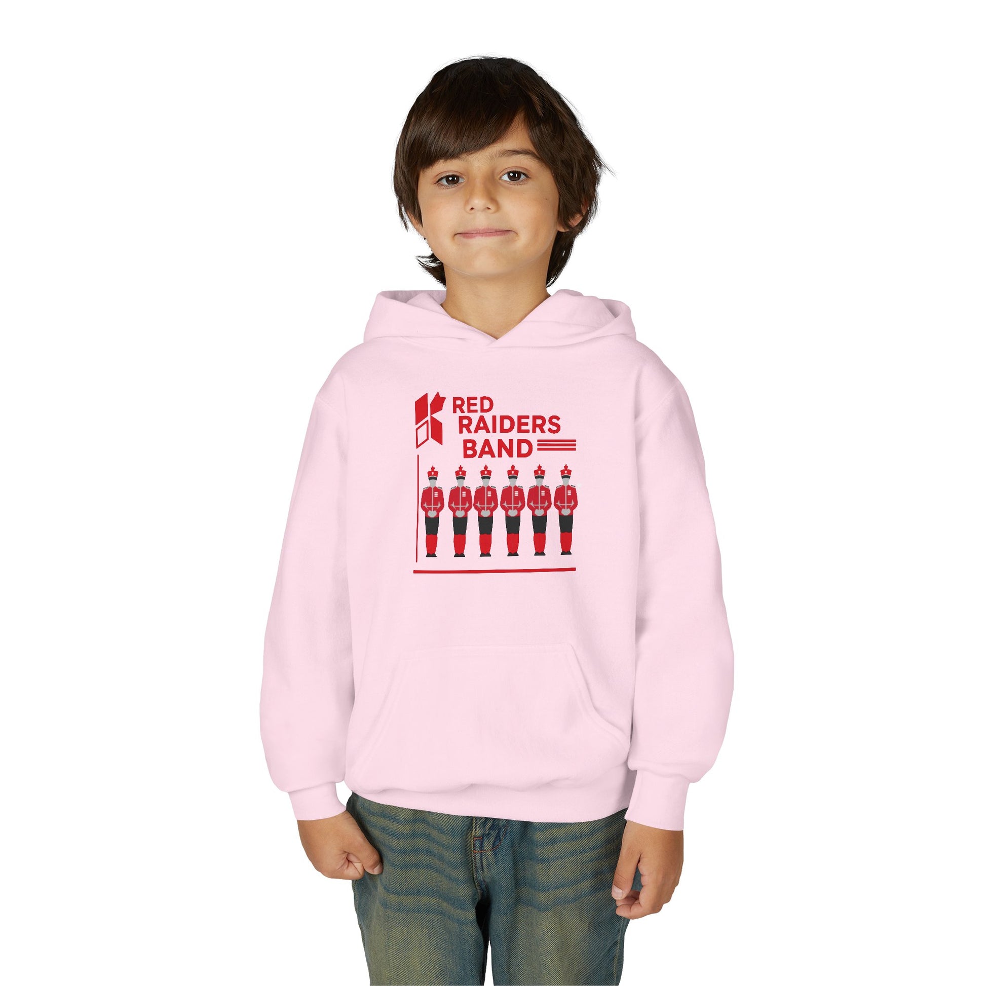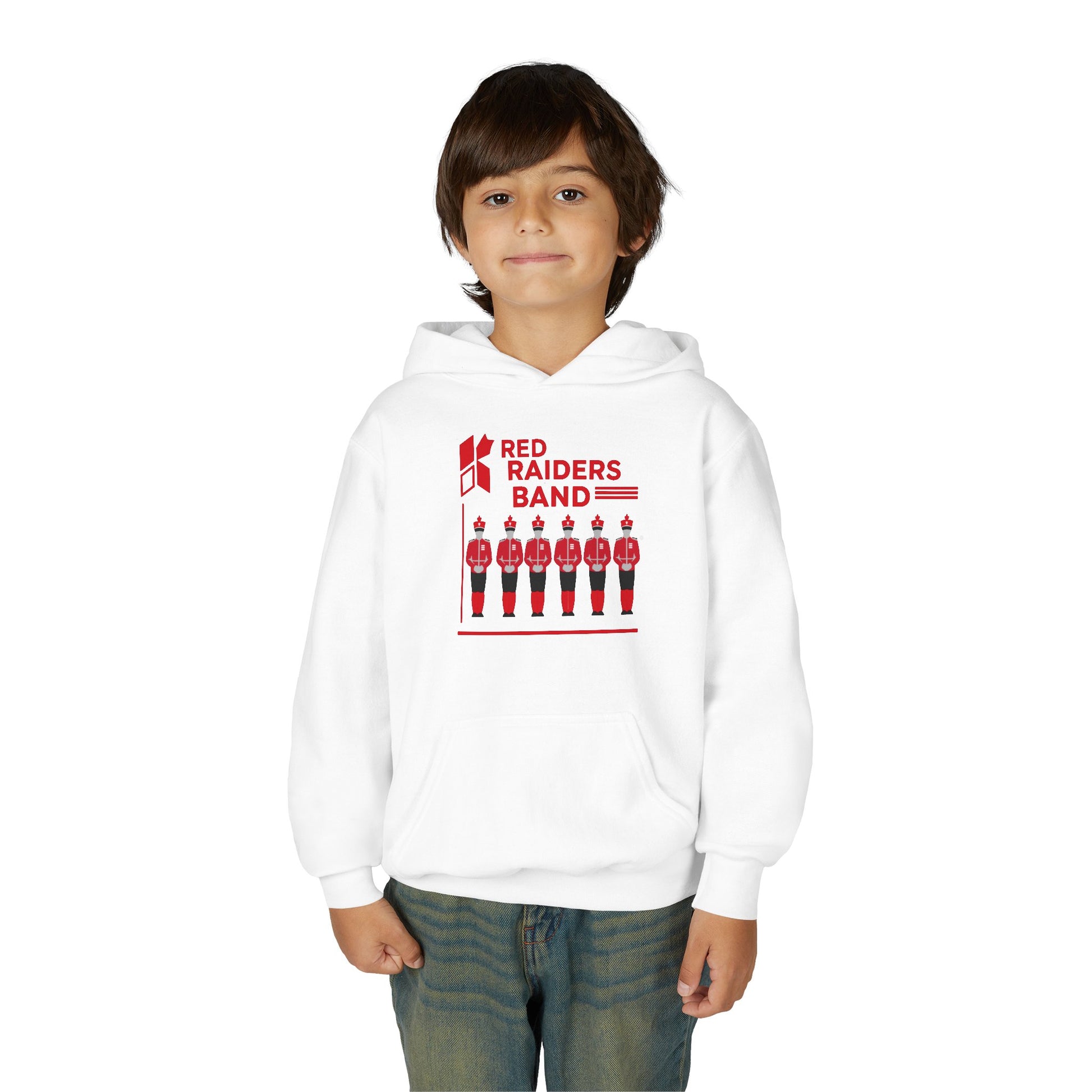 This Youth Heavy Blend Hooded Sweatshirt is designed for comfort and style, perfect for young fans of the Red Raiders Band. Made from a soft blend of cotton and polyester, it offers a cozy fit that’s ideal for everyday wear or special occasions. The spacious kangaroo pocket not only keeps hands warm but also provides a convenient storage solution for small essentials. Whether it’s a chilly game day, music performances, or casual outings, this sweatshirt fits seamlessly into any kid's lifestyle. It makes an excellent gift for birthdays, holidays, or celebrations. It's a great choice for school events, band practices, and family gatherings, bringing a sense of pride and camaraderie to young ones who want to show off their band spirit.