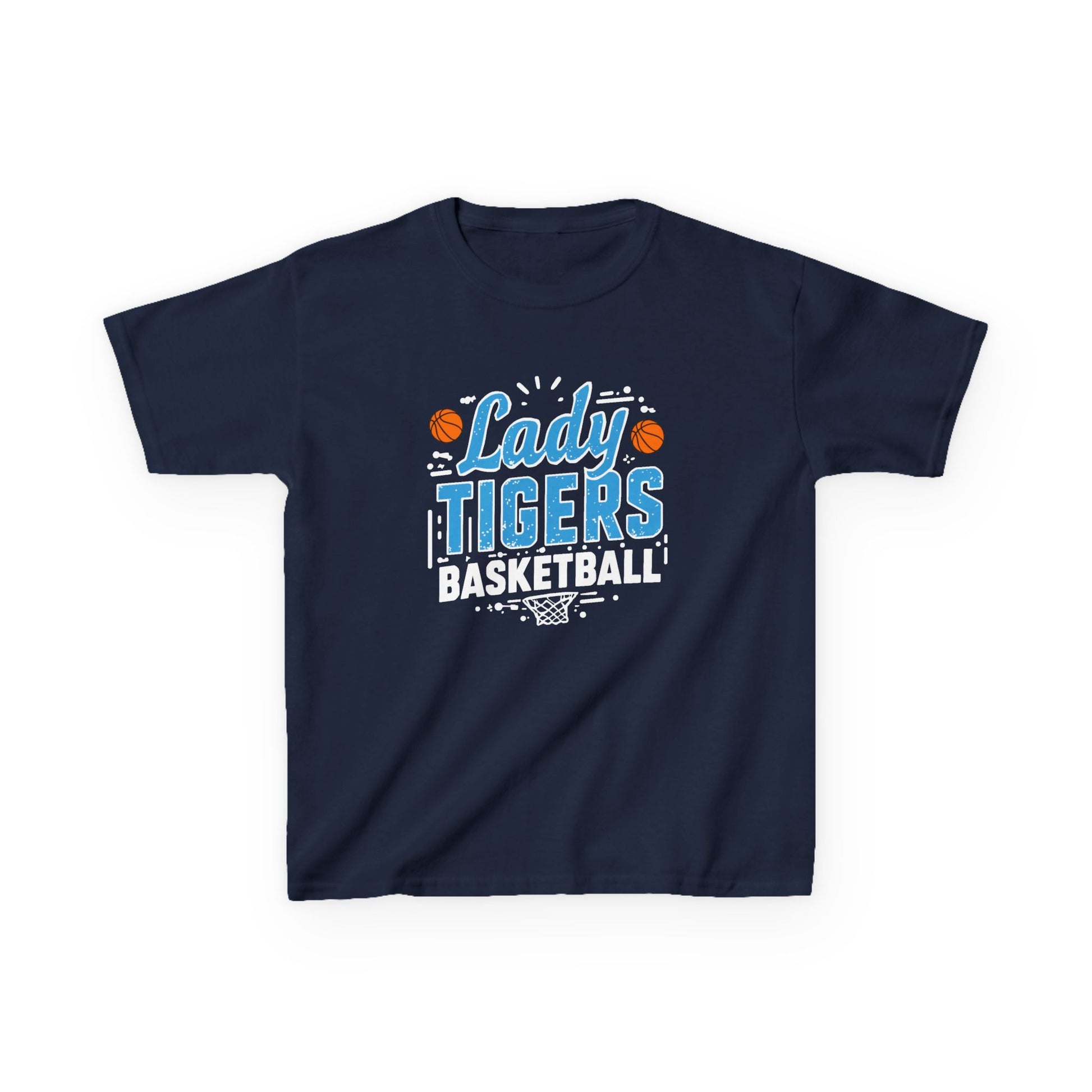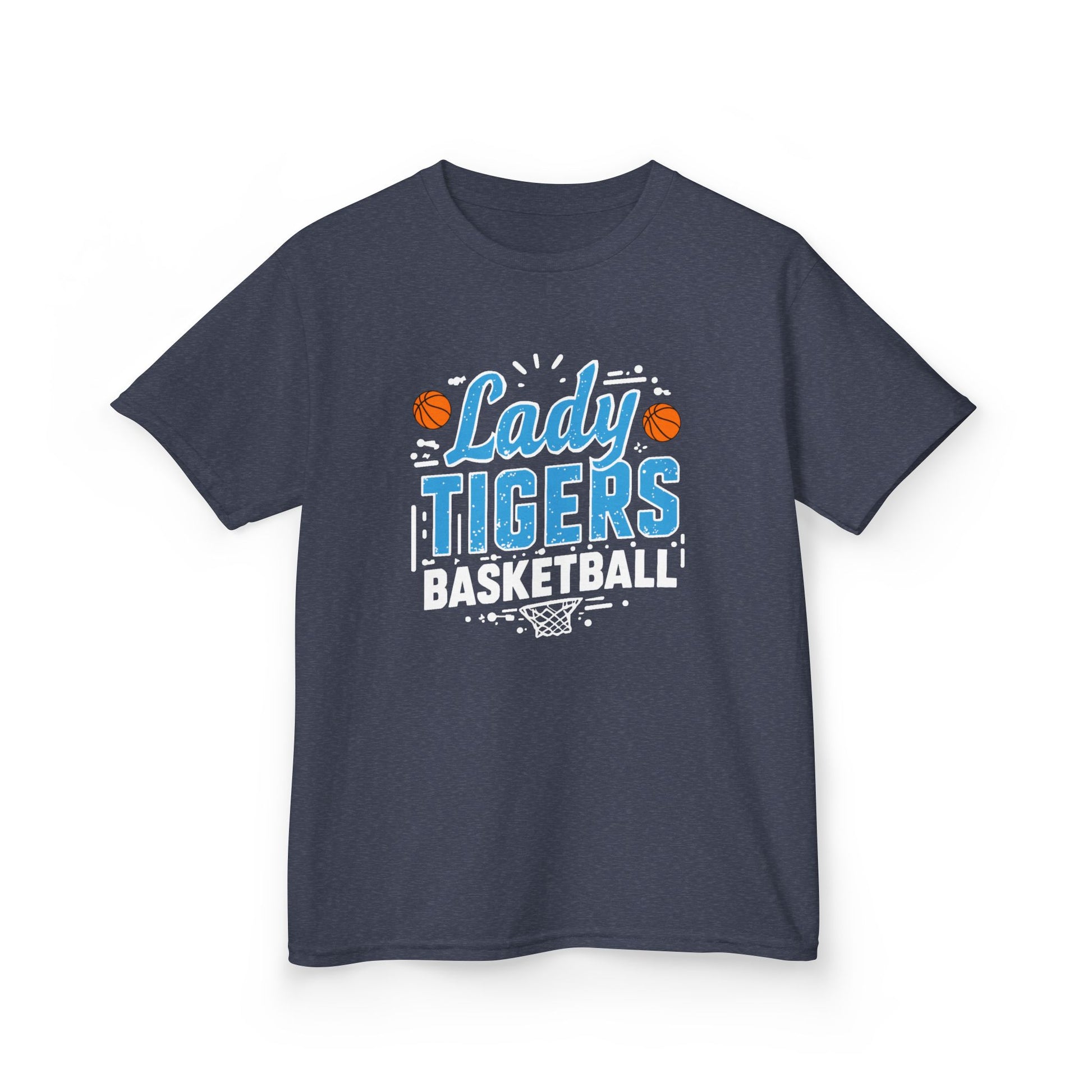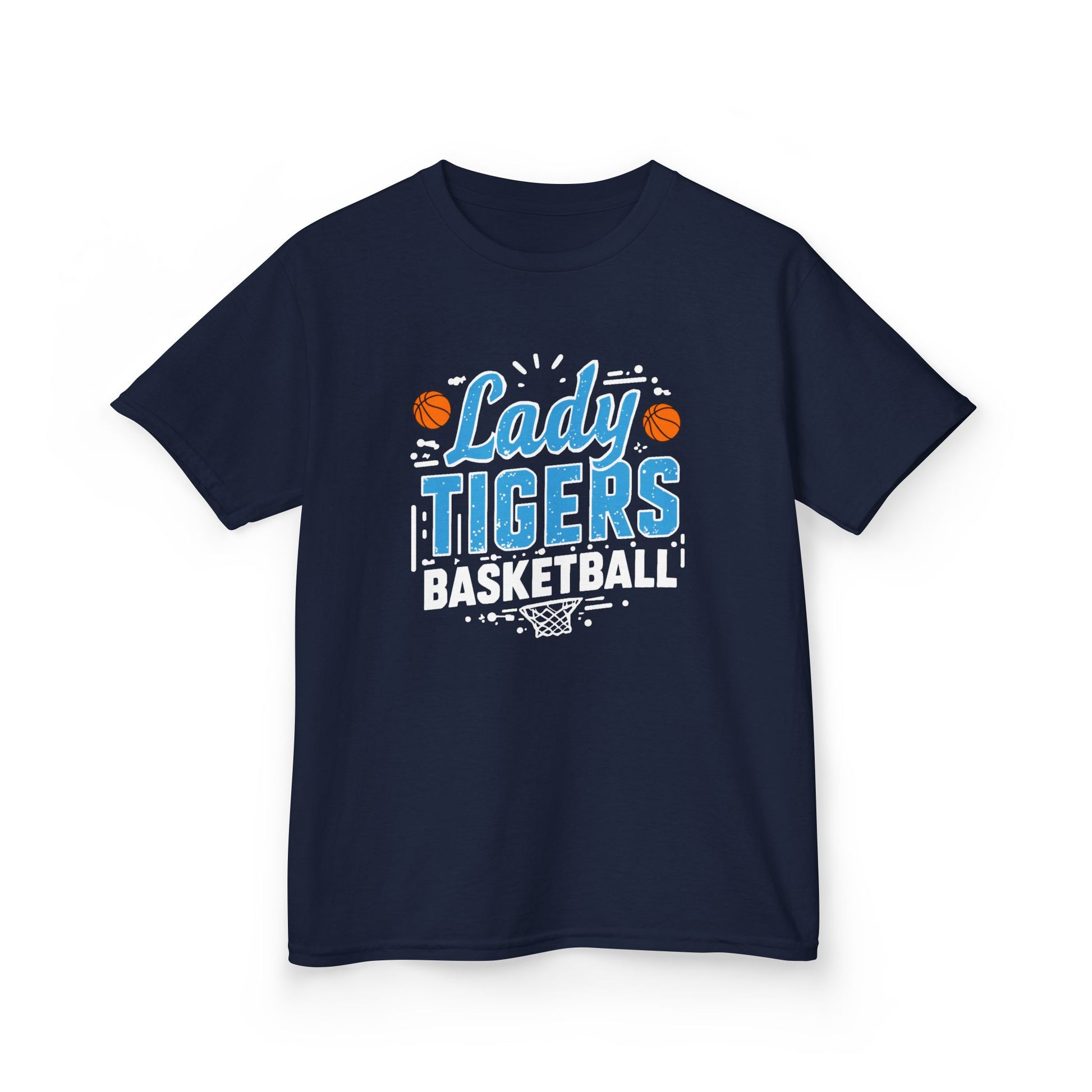 This kids' tee carries the energy of the court: bold lettering, bouncing basketballs, and a spirited “Lady Tigers Basketball” badge that announces team pride without shouting. The midweight cotton feels soft against active skin, while the classic crew neckline and timeless fit keep playtime comfortable and easy. It’s the kind of shirt a young player reaches for before warm-ups — familiar, sturdy, and full of team color. Whether worn for practice, school game day, or just running drills in the driveway, it settles in like part of the uniform and makes cheering feel a little louder.